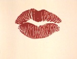 formas femeninas, más un splash blanco con un beso estampado sobre él,