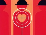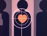 al detenerse la mira sobre una silueta en la que está pintado un corazón.
